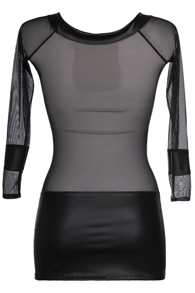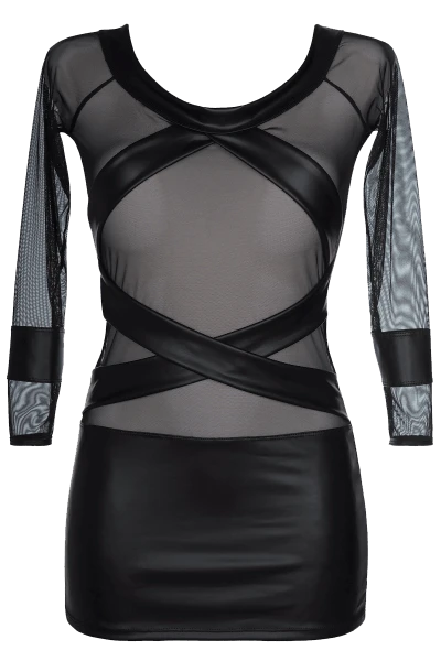 - Aus blickdichtem Wetlook und transparentem Tüll