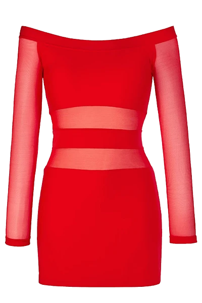 Axami Rotes Kleid Mit Tüll-Ärmeln