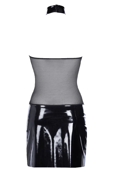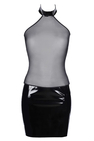 Axami Schwarzes Wetlook Kleid Mit Tüll