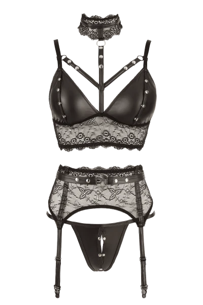 Cottelli Collection 3tlg. Dessous Set Mit Wetlook Und Nieten