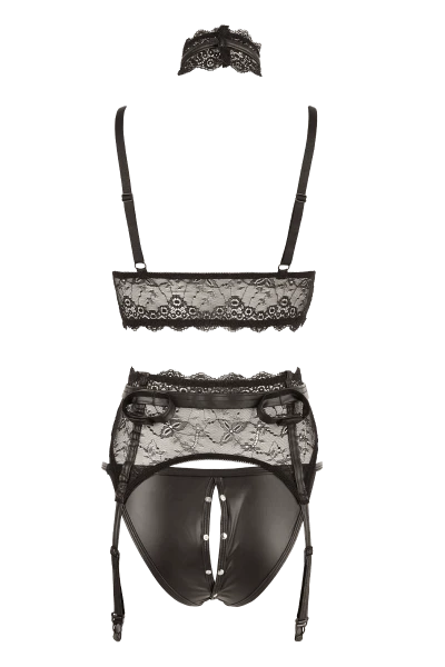 - 3tlg. Dessous Set aus Spitze und Wetlook