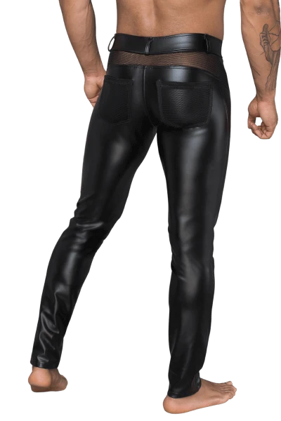 Noir Handmade Men Wetlook Hose Mit Netz-Einsätzen