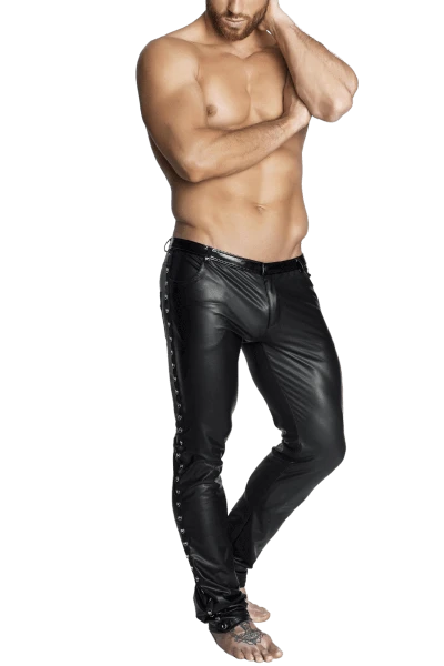Noir Handmade Men Wetlook Hose Mit Nieten